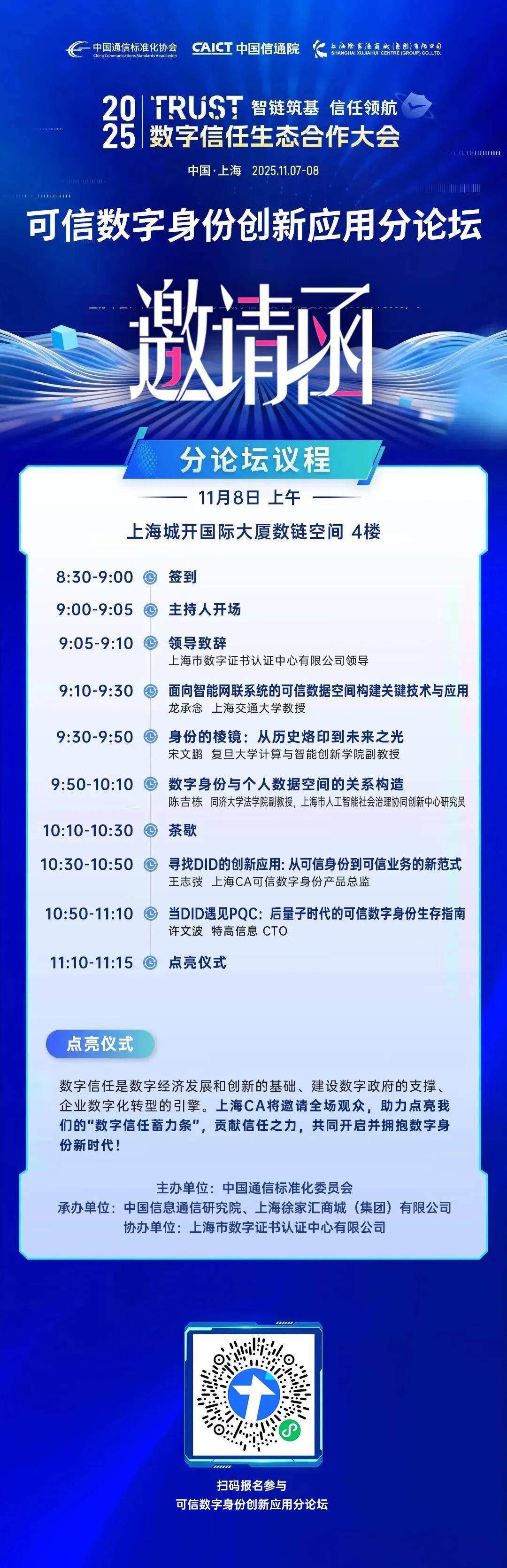 2025年11月8日上午,在上海举办2025数字信任生态合作大会期间,以“信任无界 数字新生”为主题的可信数字身份创新应用分论坛将在上海城开国际大厦数链空间启幕,一场聚焦数字身份技术突破、场景落地与生态共建的行业盛会,正期待您的加入!