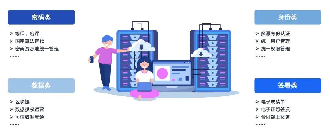 据了解,全国学校互联网接入率超99%,99.5%中小学拥有多媒体教室,各类智慧教育平台注册用户超1.64亿;国家平台集成727万条职教资源、8.8万条基础教育资源,拥有184个中小学AI教育基地、50个高校AI应用场景试点等。面对庞杂的行业数据,教育行业针对密码安全、身份鉴别、数据可信流通等的需求日益凸显。